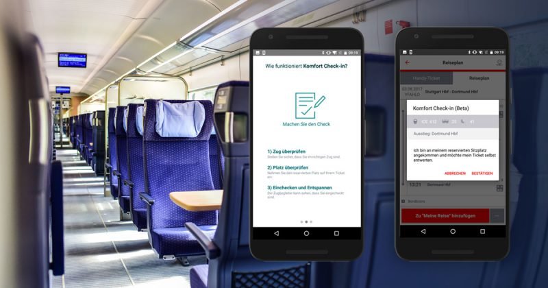 Die Deutsche Bahn DB testet mit dem sogenannten «Komfort Check-In» eine Erfassung der Reisenden welche die Kontrolle der Fahrausweise überflüssig macht. Der neue Service steht allen Fahrgästen mit ausgewählten Handy- oder Online-Tickets mit einer Sitzplatzreservierung und der aktuellsten Version des DB Navigators zur Verfügung.