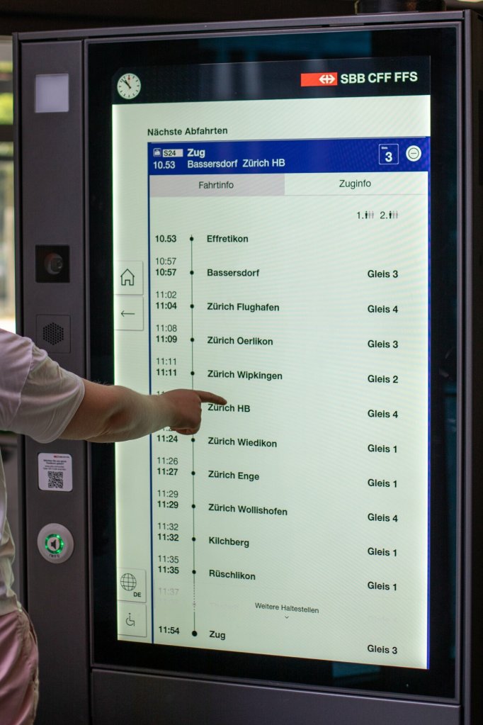Das gelbe und gedruckte Abfahrtsplakat soll damit schrittweise verschwinden, ebenso gedruckte Bahnersatz- oder Liniennetzpläne. Bei besonderen Situationen, beispielsweise Fahrplanänderungen aufgrund von Baustellen, können die Kundinnen und Kunden noch besser und vor allem in Echtzeit informiert werden.